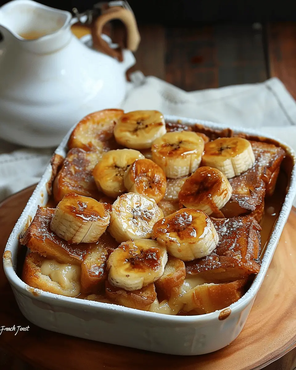 A delightful casserole that combines the rich flavors of banana and croissants in a French toast style.