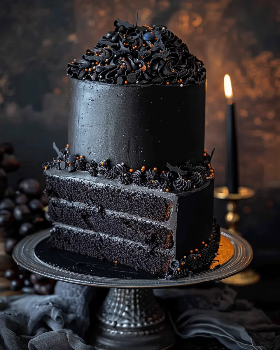 This Halloween, let your culinary creativity shine with this deliciously dark cake—your friends and family will surely be haunted by how tasty it is!