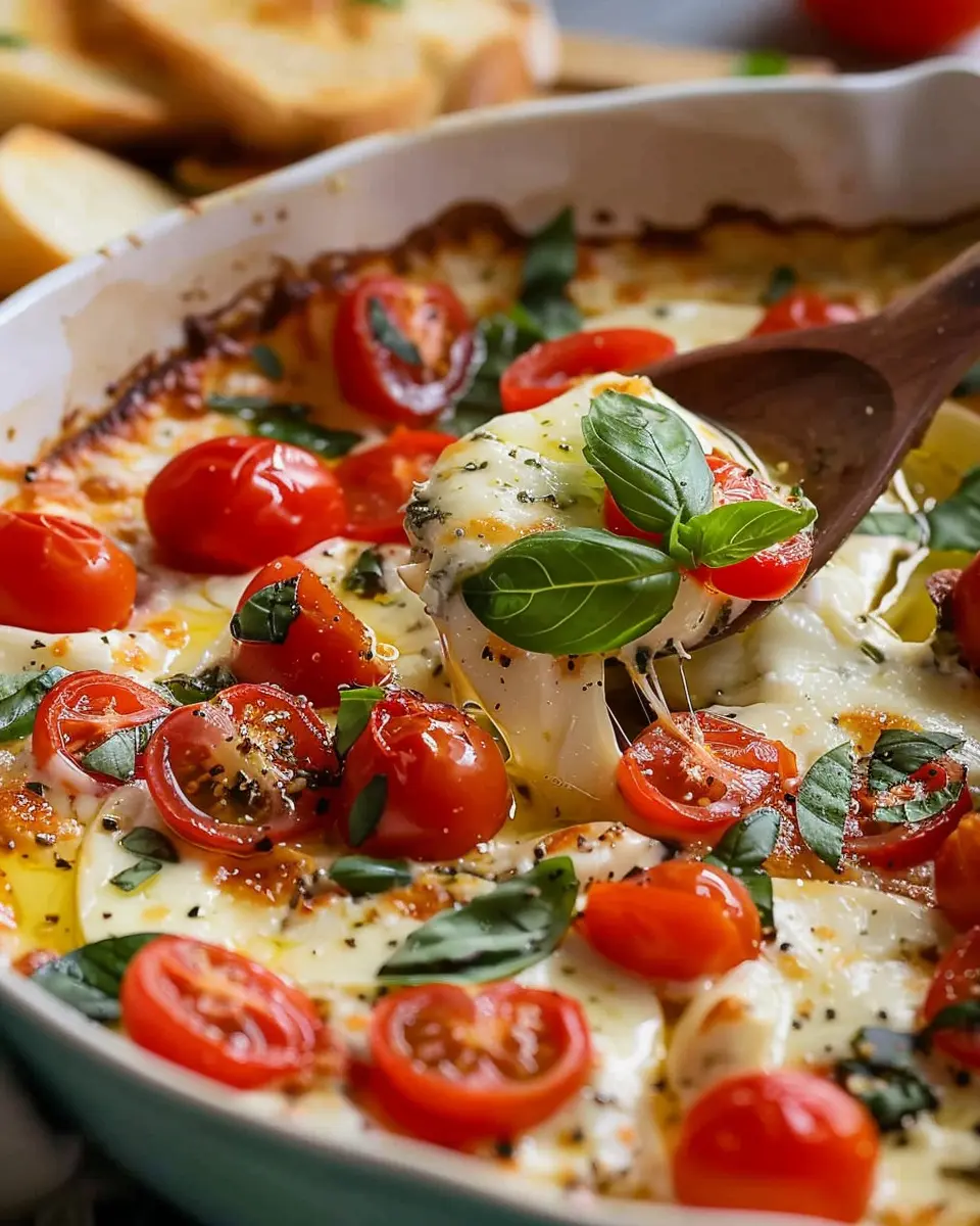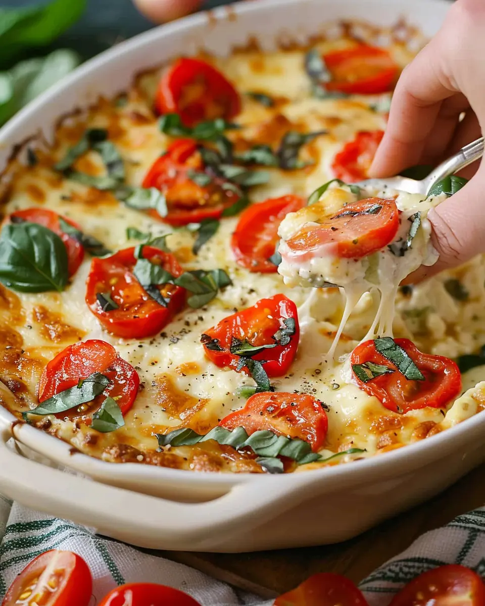 A delicious and easy Caprese Dip that combines the fresh flavors of tomatoes, basil, and mozzarella for a perfect appetizer.