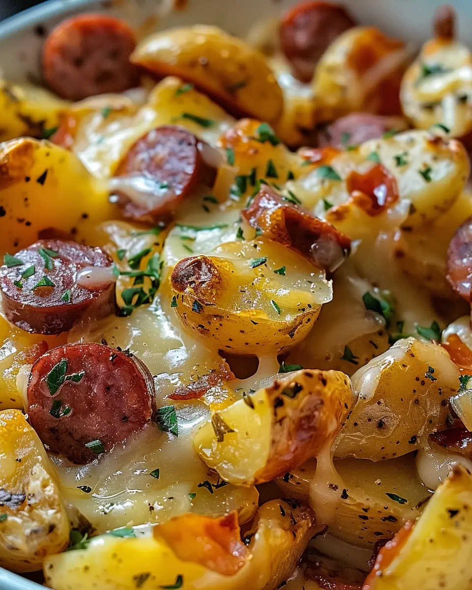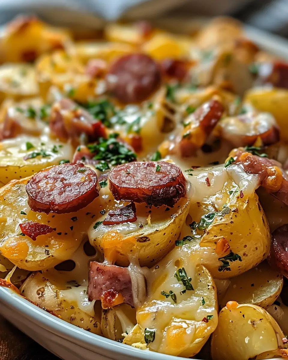 Keywords: Cheesy Ranch Potatoes, Smoked Sausage, Comfort Food