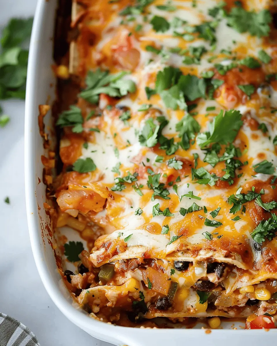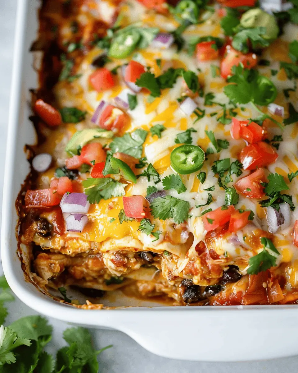 Nutrition plays a role in a balanced weeknight meal. With lean protein from the chicken and fiber from the beans, Chicken Burrito Casserole is not only delicious but also nourishing. If you’re looking for a health-conscious twist, consider using whole-grain tortillas or reducing the cheese for something a little lighter.