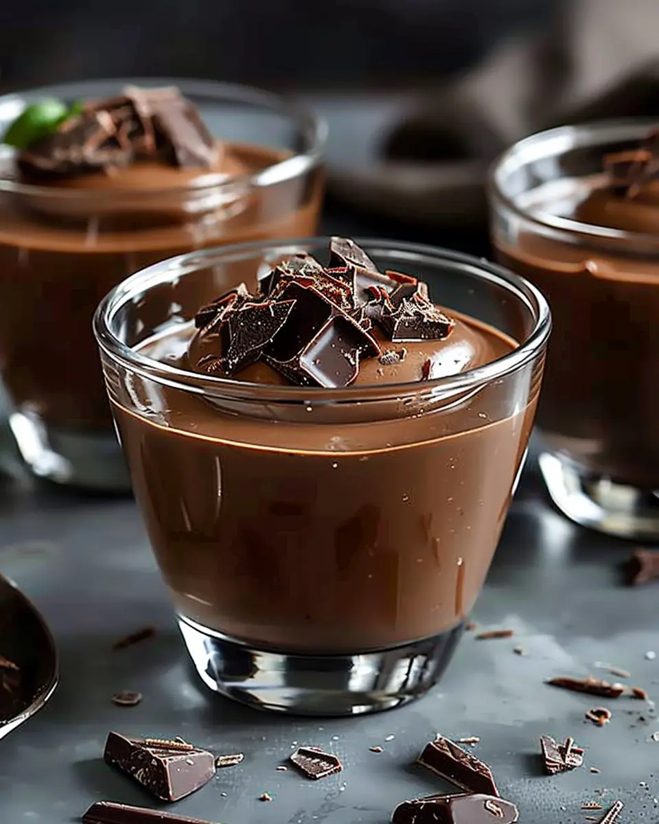 Indulge in the rich, creamy flavor of these chocolate pots de creme, perfect for any special occasion.
