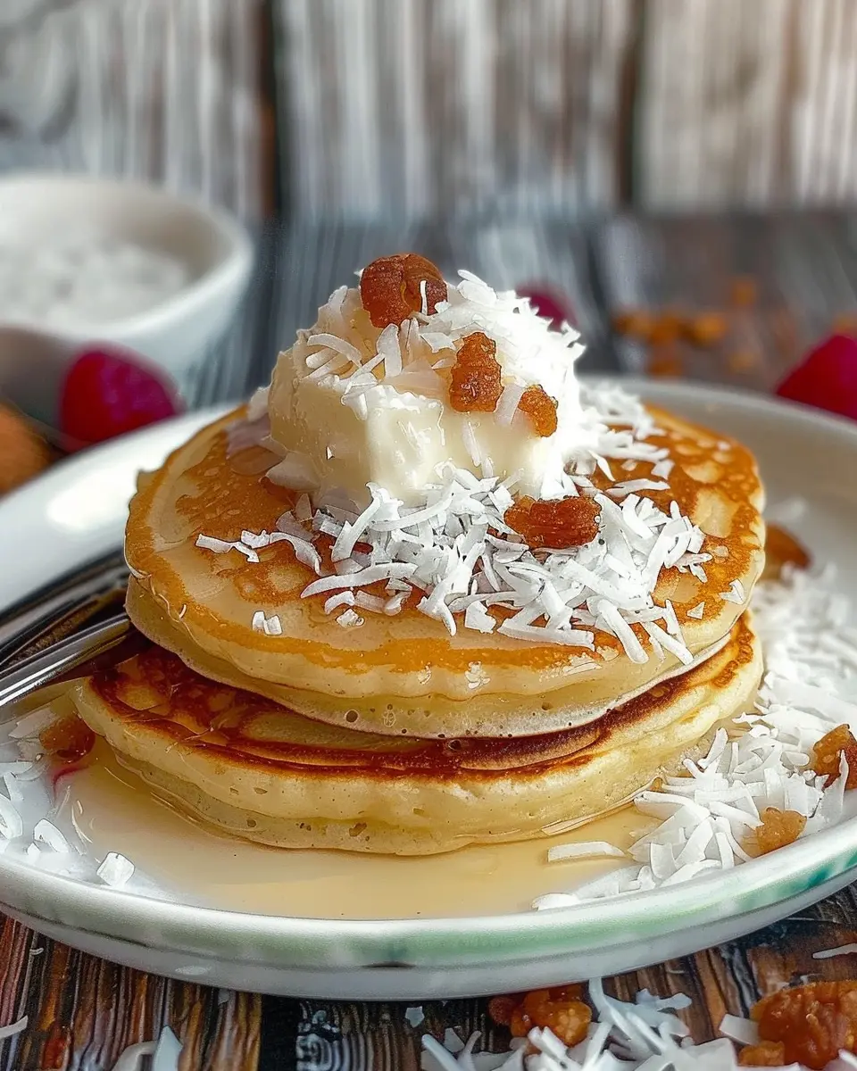 Moreover, this recipe is versatile. While traditional toppings like maple syrup are always a hit, consider pairing your pancakes with tropical fruits like mango or pineapple, or a drizzle of warm honey for an extra layer of sweetness. Did you know that coconuts boast numerous health benefits? They’re rich in fiber, vitamins, and minerals, making your pancakes not only delicious but also nutritious!