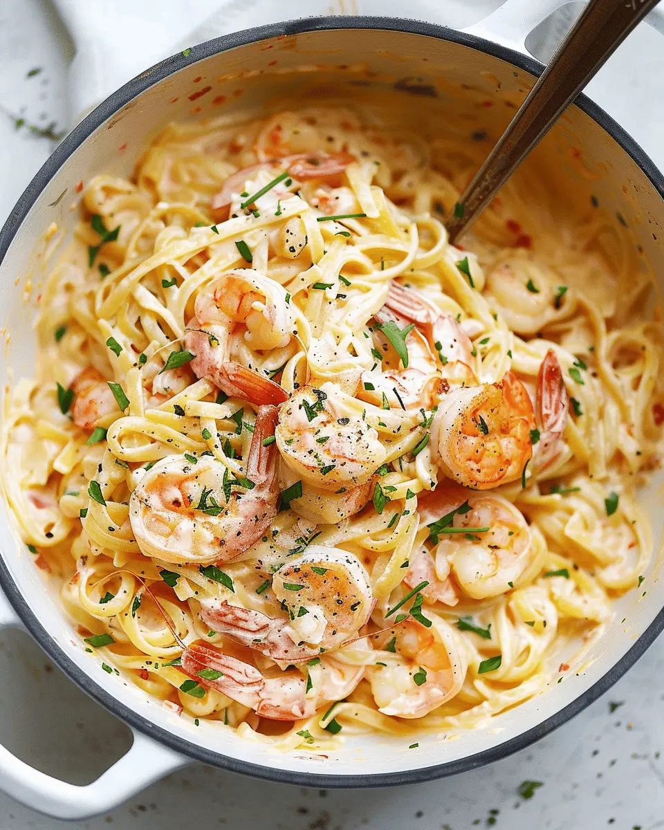 Keywords: shrimp, pasta, creamy, seafood, comfort food