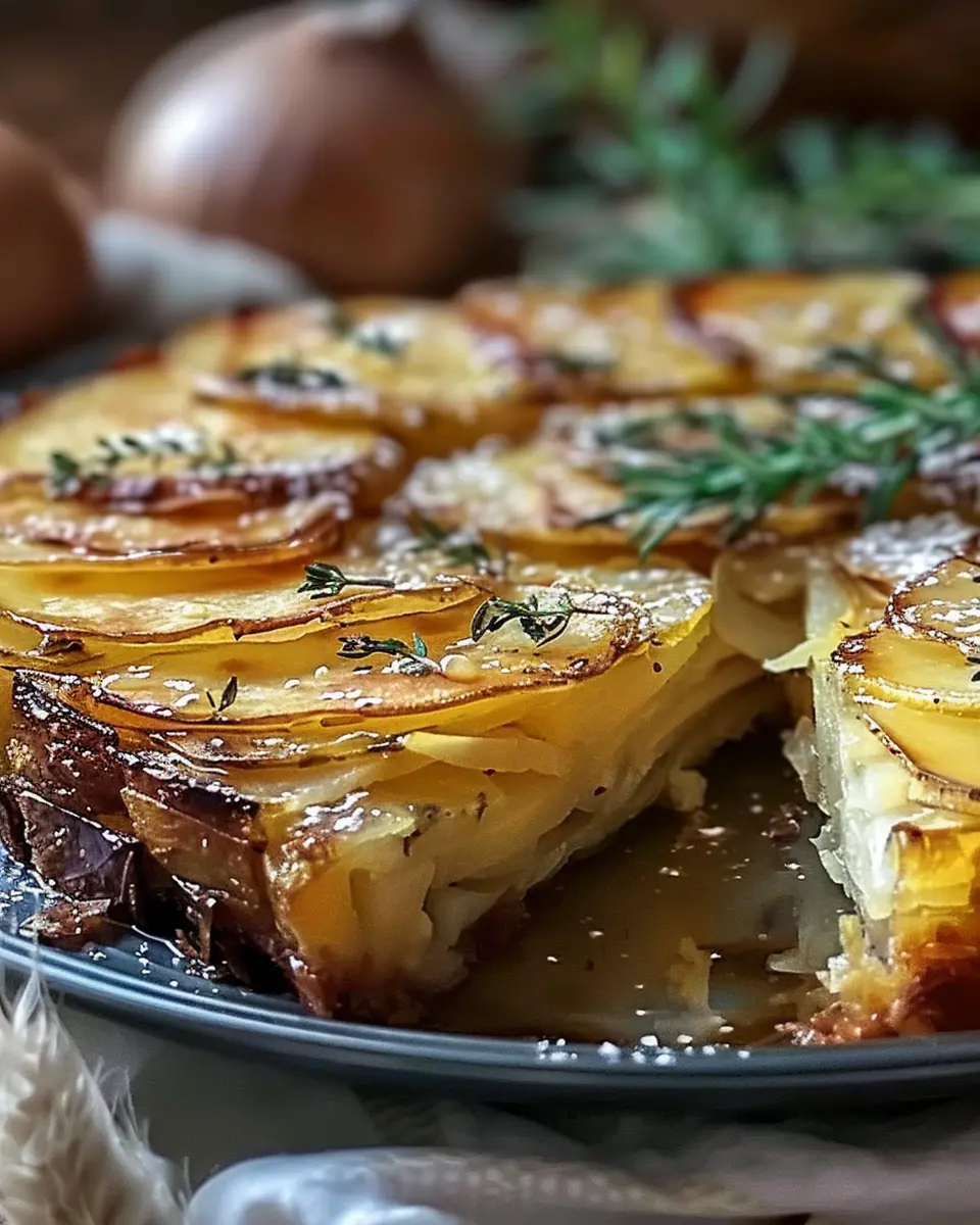 • First Layer: Start with a layer of potato slices, slightly overlapping them for even cooking.