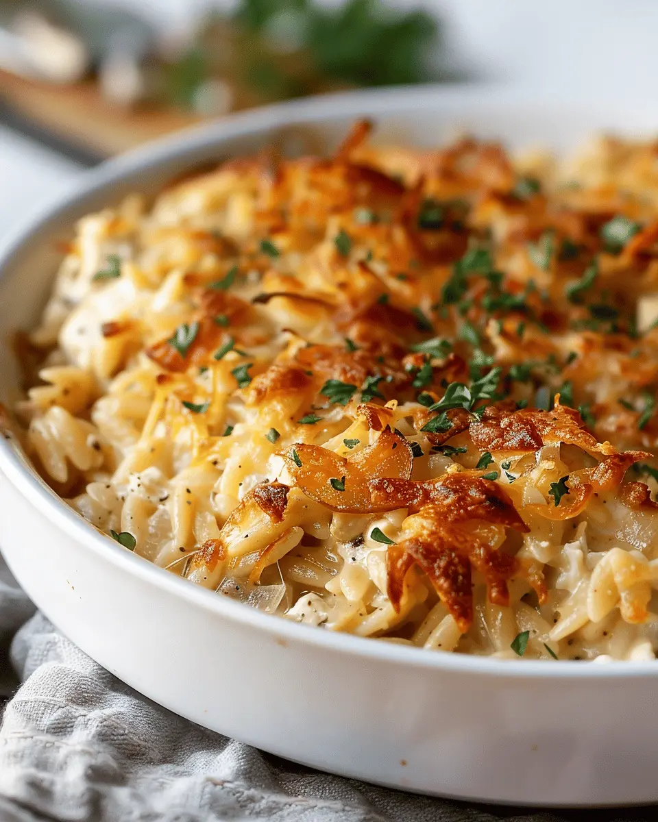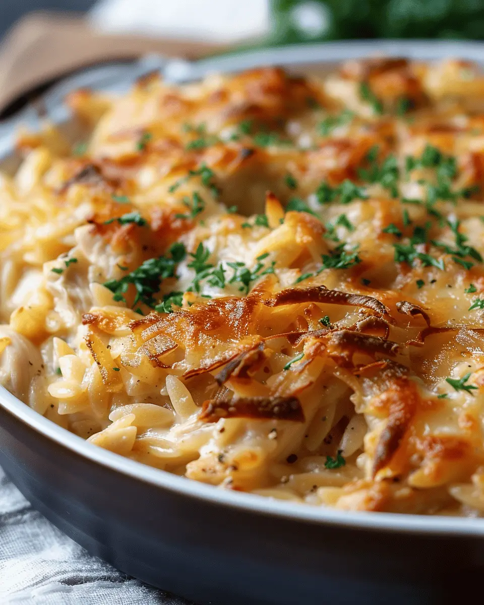 French Onion Chicken Orzo Casserole: Easy Comfort Food Delight