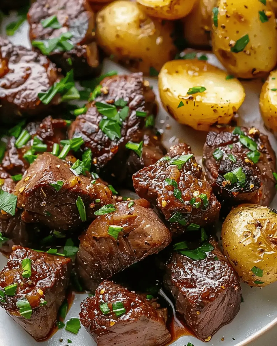 Imagine tender steak bites seared to perfection, surrounded by golden, crispy potatoes, all kissed by that rich garlic butter. It’s not just a meal—it’s an experience that turns an ordinary evening into a culinary delight.