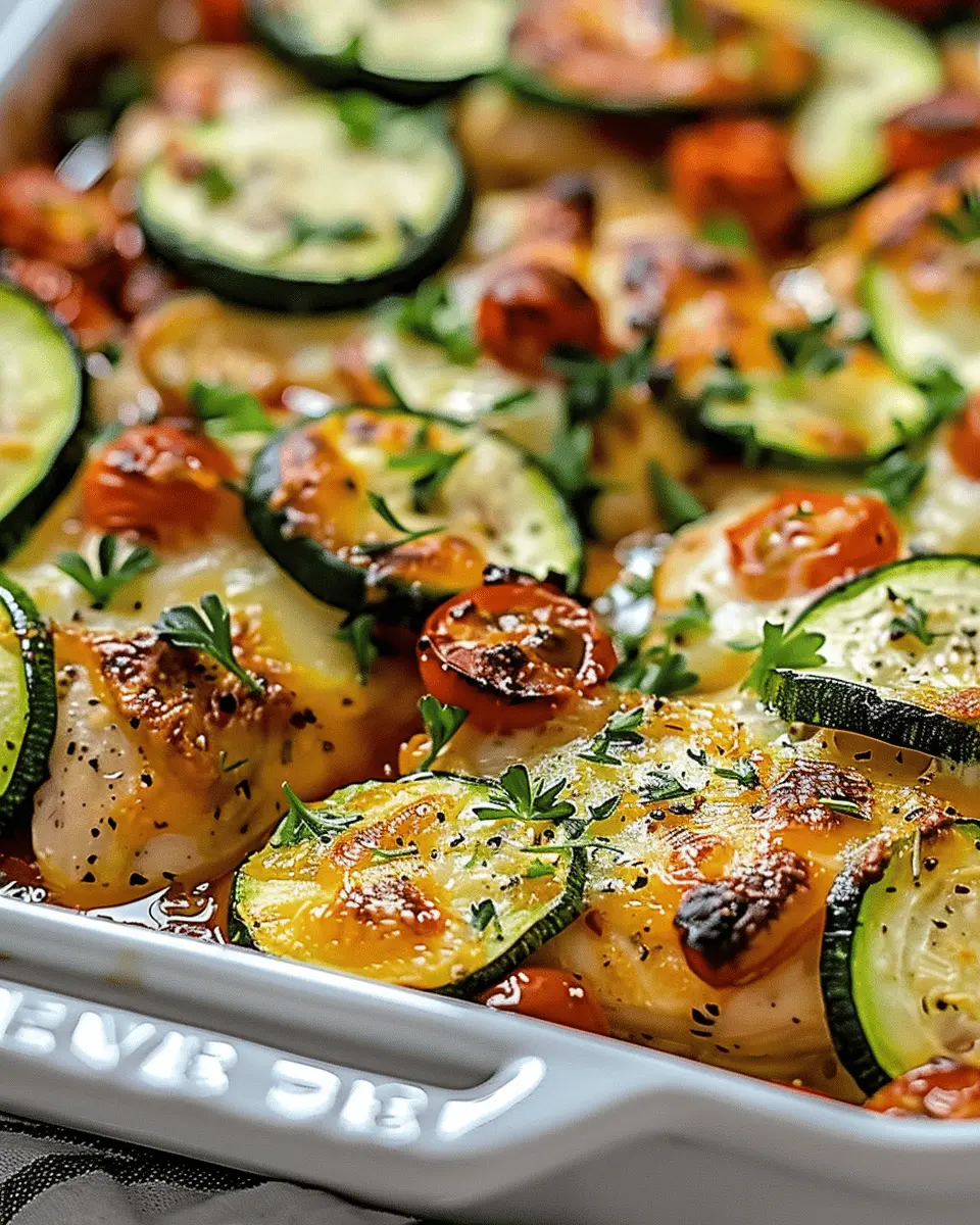 In summary, the Mediterranean Chicken Zucchini Bake is a delightful and wholesome dish that beautifully marries flavors while offering a nutritious option for busy lifestyles. With its colorful ingredients and mouthwatering aroma, this recipe is perfect for a weeknight dinner or even a special gathering.