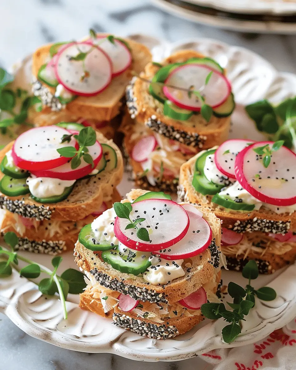 When planning your next gathering, radish poppyseed tea sandwiches are a delightful choice sure to impress your guests. These sandwiches not only taste fabulous but also boast vibrant colors that can brighten any table setting. Here are some serving suggestions to elevate your experience: