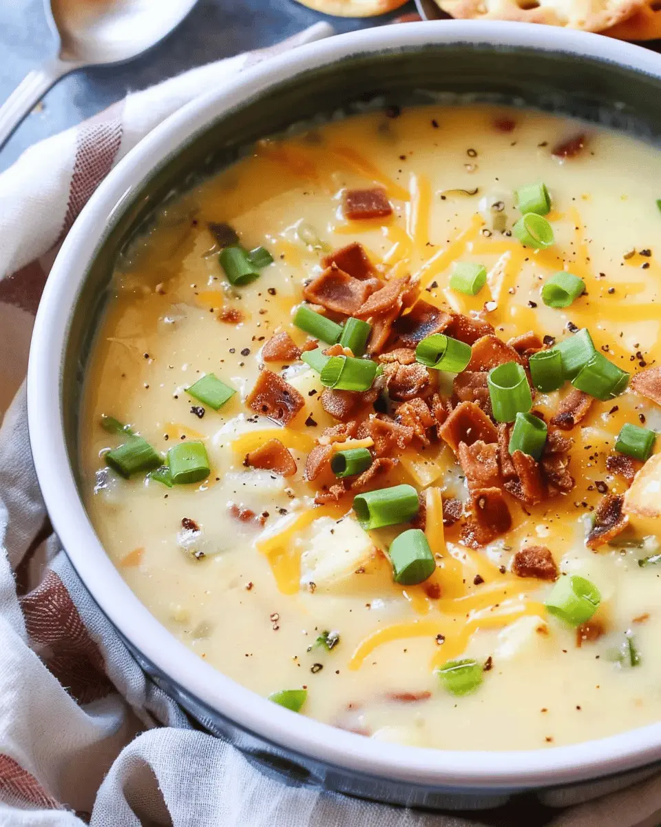 One reason this soup is a crowd-pleaser is its incredible versatility. You can easily customize it based on your preferences or what you have on hand. Whether you’re vegan, gluten-free, or a meat lover, there are endless possibilities! The base of creamy potatoes, onions, and savory broth is blank canvas you can enhance with toppings like crunchy turkey bacon, shredded cheese, or even chicken ham. If you’re looking for a refreshing side, consider pairing it with a crisp garden salad or buttery garlic bread to round out your meal.